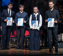 A Ruben Xhaferi, sono stati assegnati sia il primo premio sia il premio del pubblico, secondo premio a Guido Orso Coppin e il terzo premio a Paolo Ehrenheim. A quest’ultimo è stata inoltre attribuita una menzione speciale per la migliore esecuzione del brano contemporaneo di Mariano Russo, commissionato dal Festival all’Accademia Nazionale di Santa Cecilia nell’ambito dei corsi di alta formazione. La borsa di studio offerta dalla Fondazione Musicale Omizzolo Peruzzi è stata assegnata a Chiara Bleve per la migliore esecuzione di Ein Altes Albumblatt di Silvio Omizzolo. La pianista ha ricevuto anche una menzione speciale dalla giuria.