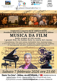 Sabato 07 febbraio 2026, ore 21.00 - Incontro in collaborazione con la Società Dante Alighieri-Comitato di Milano su MUSICA DA FILM
