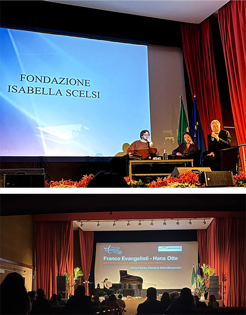 La sera di mercoledì 4 febbraio, il pubblico dell’Istituto Italiano di Cultura di Bruxelles ha vissuto un’esperienza intensa, meditativa e profondamente coinvolgente con l’evento Dal silenzio a un nuovo mondo sonoro, capace di coniugare rigore scientifico e suggestione sensoriale. Articolata tra conferenza, proiezione di un docufilm e performance dal vivo, la serata ha esplorato le figure umane e artistiche dietro le pagine musicali di due protagonisti emblematici del Novecento, Franco Evangelisti (1926–1980) e Hans Otte (1926–2007), nel centenario delle rispettive nascite. La conferenza ha offerto un quadro storico e analitico di ampio respiro, mettendo in luce l’importanza della ricerca sul suono, sul silenzio e sull’ascolto, intesi non solo come elementi compositivi ma come vere e proprie categorie estetiche e filosofiche. La prima parte della serata ha visto gli interventi di Gianni Trovalusci, Presidente della Fondazione Isabella Scelsi, Irmela Heimbächer Evangelisti, Presidente della Fondazione dal 2014 al 2024, e Tommaso Vigna, dottorando in musicologia (ULB-FNRS). Attraverso approcci storici, analitici e testimonianze dirette, gli interventi hanno delineato il contesto estetico e culturale in cui si collocano le opere di Evangelisti e Otte, evidenziandone affinità e divergenze, nonché la centralità dell’ascolto come pratica attiva. Come riferito da Irmela Heimbächer Evangelisti, i due compositori erano legati da una profonda amicizia, emersa anche dalla recente scoperta di una corposa corrispondenza conservata nell’archivio della Fondazione Isabella Scelsi. È seguita la proiezione del docufilm È dopo. Appunti su Franco Evangelisti (1926–1980) di Leonardo Zaccone e Alessandro Pezza. Il film ha arricchito ulteriormente la riflessione, restituendo la visione dell’avanguardia di Evangelisti come spazio di sperimentazione tra proiezioni sonore, strutture aperte e relazioni dinamiche tra forma e materia del suono. Infine, il concerto della pianista e ricercatrice Giusy Caruso ha proposto musiche di Evangelisti (Proiezioni Sonore, 1955–1956) e Otte (Das Buch der Klänge, 1984). A proposito del primo brano, come racconta la pianista, «Proiezioni Sonore ha un linguaggio particolarmente contemporaneo, fatto di esplosioni di suono e di un approccio fortemente corporeo e percussivo sullo strumento, che lascia spazio alle risonanze armoniche e al silenzio, creando così un nuovo mondo sonoro». La seconda parte del concerto ha proposto un percorso musicale capace di attraversare la soglia tra silenzio e suono, culminando nell’esecuzione dal vivo di Das Buch der Klänge di Otte. Questo ciclo per pianoforte rappresenta uno dei vertici del pensiero musicale del compositore tedesco: una scrittura di apparente semplicità formale che si apre a un dialogo profondo tra tradizione europea, minimalismo e influssi di spiritualità orientale, con un’attenzione radicale alla densità timbrica e al tempo dilatato. Nel contesto del concerto, l’esecuzione delle pagine di Otte ha rivelato dimensioni della sua musica difficilmente percepibili sulla pagina scritta ma fortemente tangibili nell’esperienza d’ascolto. Il reiterarsi dei timbri pianistici – figure lente o rapide, quasi statiche nel loro ripetersi e nel loro espandersi – ha trasformato lo spazio della sala in un campo di vibrazioni avvolgenti. Queste ripetizioni, più che semplici ostinati, si sono gradualmente fatte corpo sonoro, una presenza fisica che coinvolge l’ascoltatore non solo a livello uditivo ma anche corporeo e respiratorio. La musica ha così oltrepassato la dimensione puramente razionale per diventare percezione cinestetica: un flusso continuo capace di generare sospensione, immersione e una partecipazione quasi ipnotica. La continuità tra il silenzio come spazio vuoto e il suono denso e rallentato ha offerto una testimonianza particolarmente eloquente del mondo sonoro di Otte, in cui la musica si manifesta come tessuto di relazioni temporali e sensoriali piuttosto che come successione lineare di eventi. In conclusione, Dal silenzio a un nuovo mondo sonoro ha rappresentato un momento di grande densità culturale e riflessiva: non solo un omaggio ai cento anni dalla nascita di Evangelisti e Otte, ma anche un invito a ripensare l’ascolto come pratica attiva, meditativa e profondamente somatica. di Salvatore Sclafani ![]() |