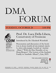 Martedì 28 ottobre 2025, ore 17.00 - Presentazione e discussione del libro di Luca Della Libera, Con la dovuta humiltà del mio profondo rispetto. Le lettere della famiglia Scarlatti ad Annibale Albani, Lim 2025. Introduce Elizabeth Weinfield