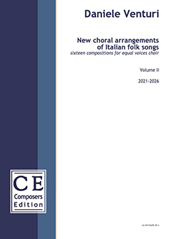 di Daniele VenturiCE Composers Edition, 2026 Descrizione: sedici composizioni per coro misto . Due volumi che sintetizza il lavoro di elaborazione di canti popolari per cori misti e cori a voci pari svolto dal 2021 ad oggi |