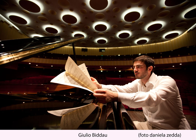 [Cagliari, 1985] Giulio Biddau, pianoforte. Ha intrapreso a dodici anni lo studio del pianoforte con Arlette Giangrandi Eggmann e si è diplomato presso il Conservatorio della sua città. Negli stessi anni ha frequentato l’Accademia Ducale di Genova con Boris Petrushansky. Ha proseguito i suoi studi pianistici a Parigi sotto la guida di Jean Marc Luisada all’École Normale, dove ha ottenuto il Diplome Supérieur de Concertiste. In seguito ha conseguito con lode il diploma di perfezionamento dell’Accademia Nazionale di Santa Cecilia nella classe di Sergio Perticaroli. Attualmente prosegue i suoi studi sotto la direzione di Sergio Perticaroli e frequenta i corsi di Aldo Ciccolini.