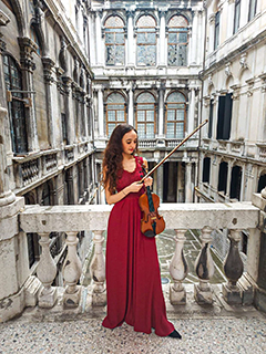 Chiara Volpato (Padova, 2004) inizia lo studio del violino all’età di tre anni presso l’Istituto Musicale Malipiero. Attualmente si perfeziona con Salvatore Accardo all’Accademia Stauffer di Cremona e con Ivan Rabaglia all’Accademia Nazionale di Santa Cecilia di Roma.