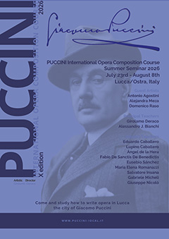 PUCCINI International Opera Composition Course - Summer Seminar 2026 Limite di età: compositori (con o senza titolo accademico) Termine di iscrizione: 31 maggio 2026 Periodo: 23 luglio 2026 - 08 agosto 2026 Schema di progetto di un'opera da camera per qualsiasi combinazione di 1-2 cantanti (soprano, baritono), 1 attore e pianoforte Informazioni aggiuntive: Il Corso Internazionale di Composizione Lirica PUCCINI riservato ai compositori (con o senza titolo accademico) disposti ad approfondire tutte le tecniche compositive in uso nell'opera - scrivere oggi, concentrandosi sia sulla tradizione italiana che su quella internazionale. Obiettivo del corso è tramandare la grande tradizione operistica, avendo come obiettivo la creazione di nuove opere, collegando passato e futuro in una visione nuova e coinvolgente. BAndo completo in allegato |